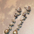The Sparkly Black Pyrite is a stunning pair of dangle earrings handmade with 6mm black pyrite roundels wire wrapped with 3.5mm pyrite roundels forming a 2" cluster chain full of lush amounts of pyrite. Suspended from the ends of each chain is a simply stunning 7x12mm Pyrite Pear Briolette that have been wire wrapped with SS 28 gauge wire and finished with a pair of sterling silver scroll post. A beautiful elegant pair of earrings.