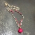 This breathtaking necklace all began when I walked into a bead store in Glen Allen, Virginia and saw a strand of this Fuchsia Chalcedony . The perfect color to enhance this years must have fashion trends. The stunning handmade chain was made using 4mm Rainbow Moonstone and Fuchsia Pink faceted roundels, that have been wire wrapped with 24 gauge gold filled wire and complimented with Rainbow Moonstone wire wrapped dangles and finished with a clasp that I made myself for a perfect delicate match.
