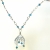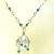 This necklace started with a generous sized 20X20mm faceted rock crystal heart briolette which I wrapped with 28 gauge sterling silver wire to form a pendant. I then draped the rock crystal with 4mm sterling silver curb chain with 3mm London blue faceted quartz crystals dangling from the ends to make a beautiful modern twist to this vintage inspired pendant. The pendant is supported by a handmade gemstone chain which I made using alternating 4mm white topaz faceted roundels and 3mm London blue faceted quartz roundels. The necklace is complimented with a 12X22mm round magnetic crystal clasp making this necklace very easy to remove as well as having the confidence that it will stay in place while wearing it.